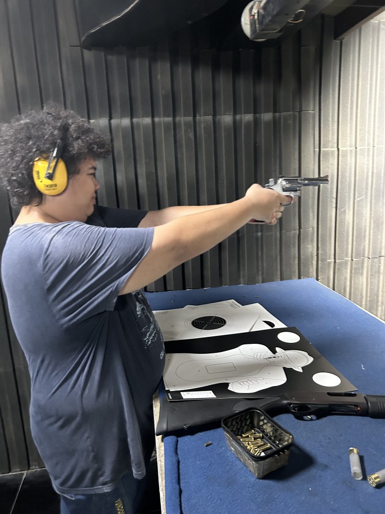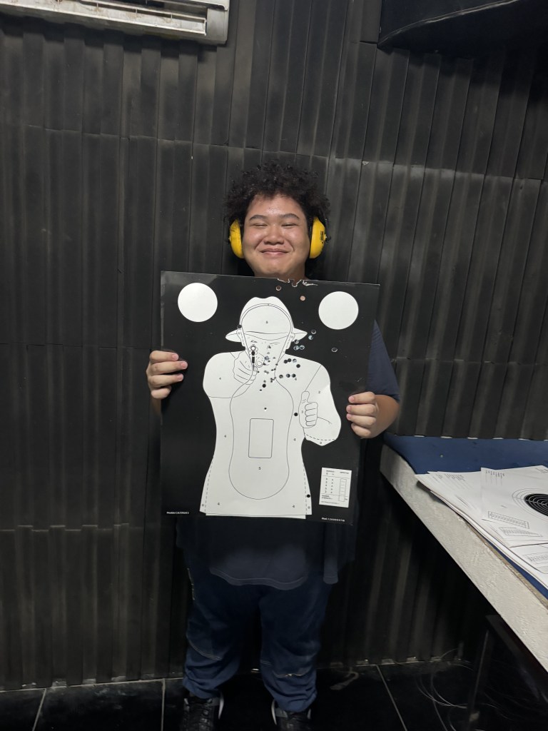 We make our way to Patong Shooting range. Irshad started on his 1st experience to shoot using an actual life firing gun. He was given 25rounds of .22 on Sig 522 Commando MPG followed by another 25rounds of .38 on S&W pistol.
