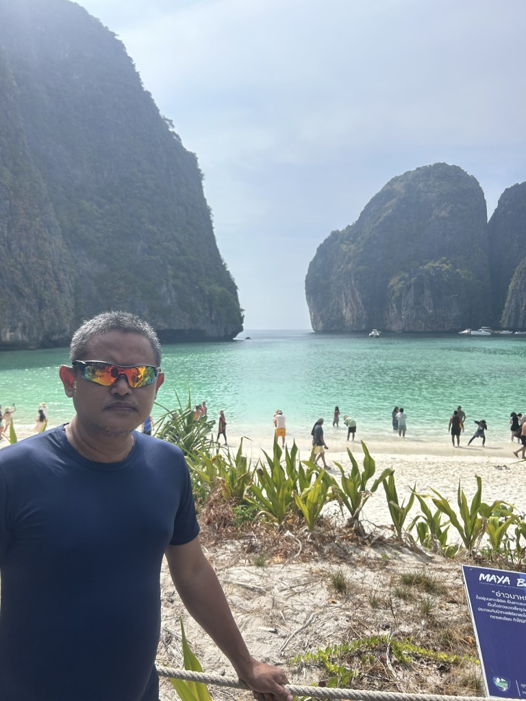 We were back to the yacht on time for our next activity. The boat berthed to one of the jetty in Phi Phi Island. The tour group did not tell us what was going on but to follow the queue line and to be back in a meeting point which they set. It was packed and they might be out of their mind. We had no choice but to follow this plan, climbed up the stairs, walked on the pathway, almost 15 min in dryland and finally saw in awe the very first time, a beach called Maya Beach. It was closed for cleaning up for months already and we were told not to swim in the water. This is not just any normal beach. This is the beach that is on the set location of the Hollywood well-known box office movie “The Beach”. Yes, the show was set here. Well, Maya beach is beautiful with turquoise calm water, in one of Phi Phi Bay, Maya bay, other than these, there is nothing special. We took pictures and videos on this beach and headed back to the meeting point to end our island hopping activities.